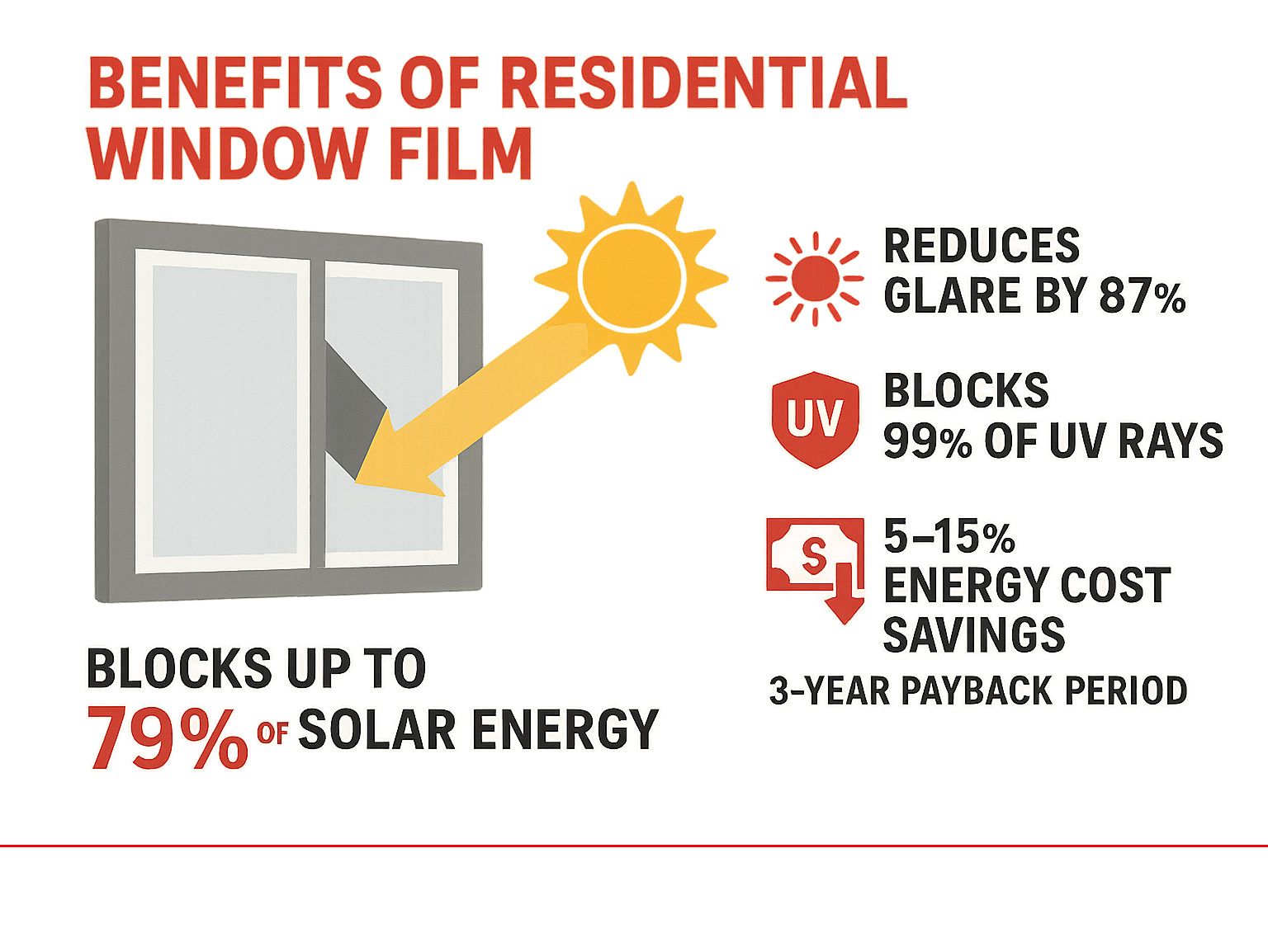 Glare reduction makes daily life more enjoyable. Quality residential films can cut glare by up to 87%, which means you can actually see your TV screen during afternoon games or work comfortably on your laptop without constantly adjusting blinds.